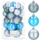 Sada 30 ks svetlo modrých baniek na stromček. Priemery baniek sú 4, 5, 6 cm. Pútko na zavesenie, nerozbitný plastový materiál. Ideálne na výzdobu stromčeka alebo ako vianočné dekorácie. Zadarmo povrázky pre ľahké zavesenie.